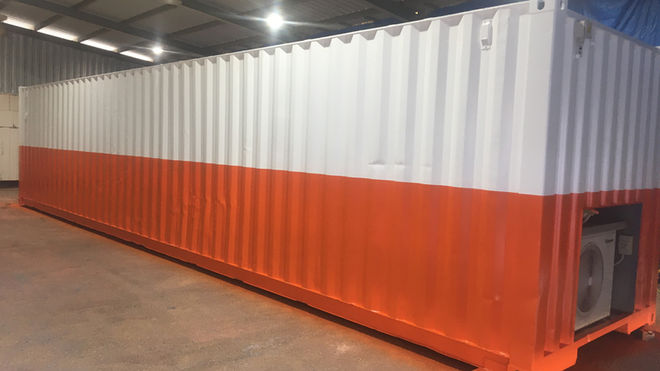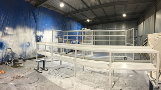 The project consisted of a 20ft long workbench and 20ft long storage rack requiring protective coatings.